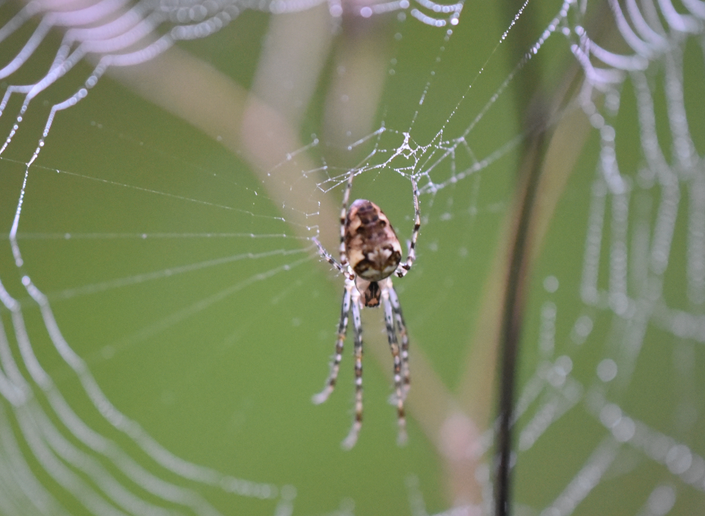 Das Netz der Dickkiefer/Streckerspinnen weißt in der Mitte ein Loch auf